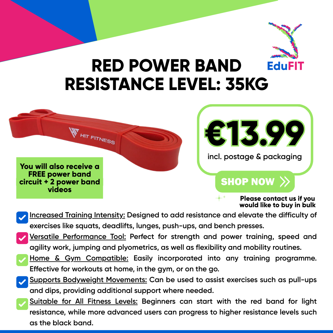 The cost of a 1 red power band including postage is €13.99 (RRP €17.95). Please input your details and provide payment details below. You will receive an email with a power band exercise circuit and access to two power band videos instructed by our wonderful Ruth.
