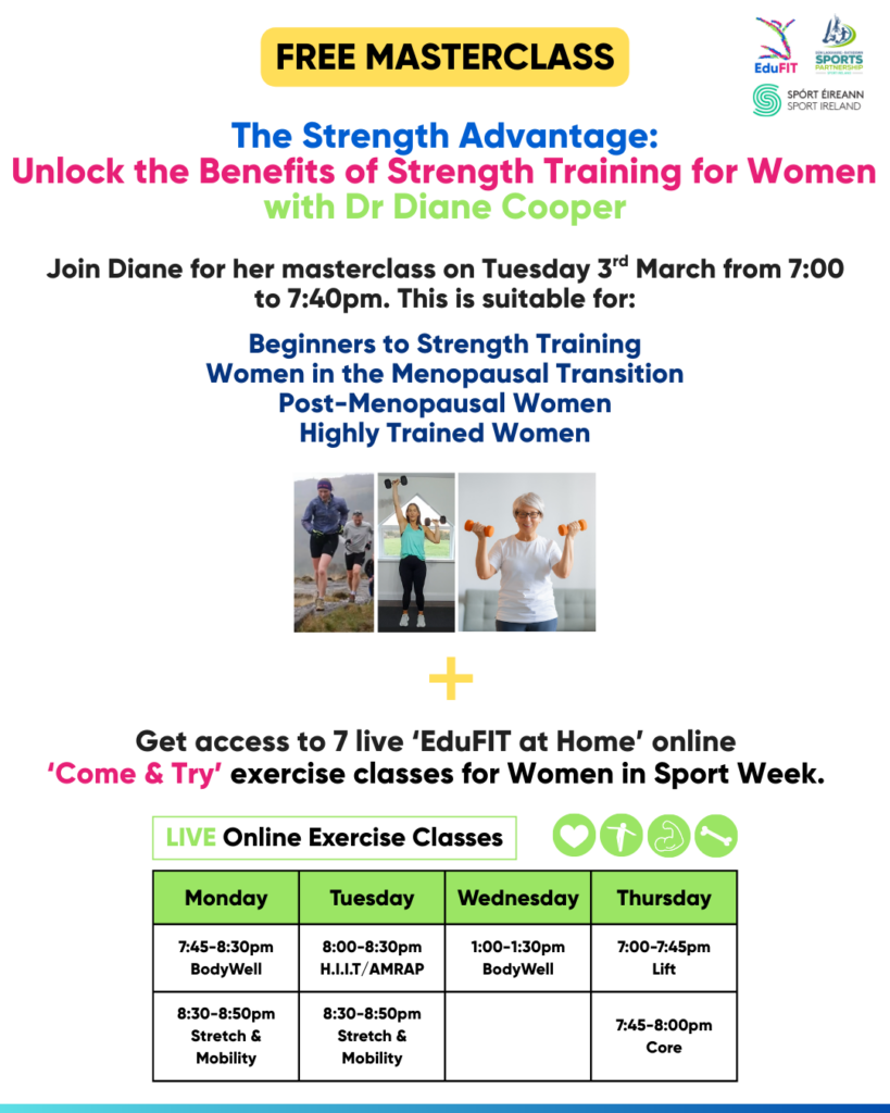 Join Dr Diane Cooper for this FREE 40-minute online masterclass titled ‘The Strength Advantage’ for women as part of Women In Sport week.
